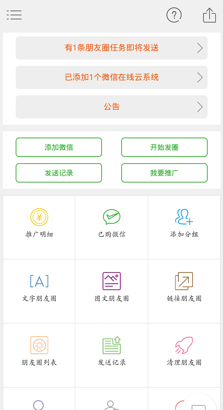 秒发圈定时发布朋友圈系统为广大用户提供(链接,文字,图文......)定时自动发布,高效快捷,稳定发布。